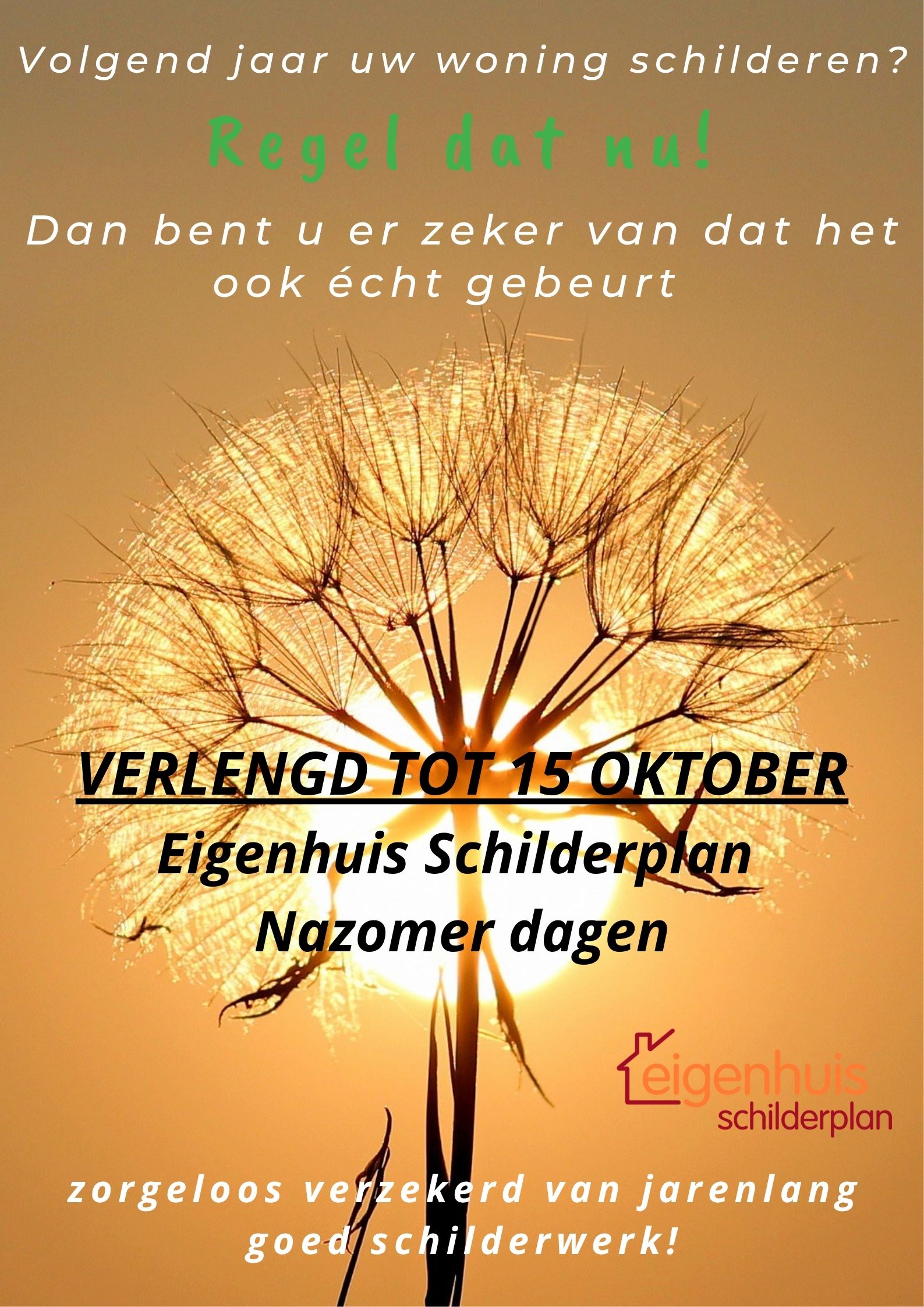 De nazomer dagen bij Eigenhuis Schilderplan zijn dus het perfecte moment om uw schilderwerk voor jaren te regelen.
